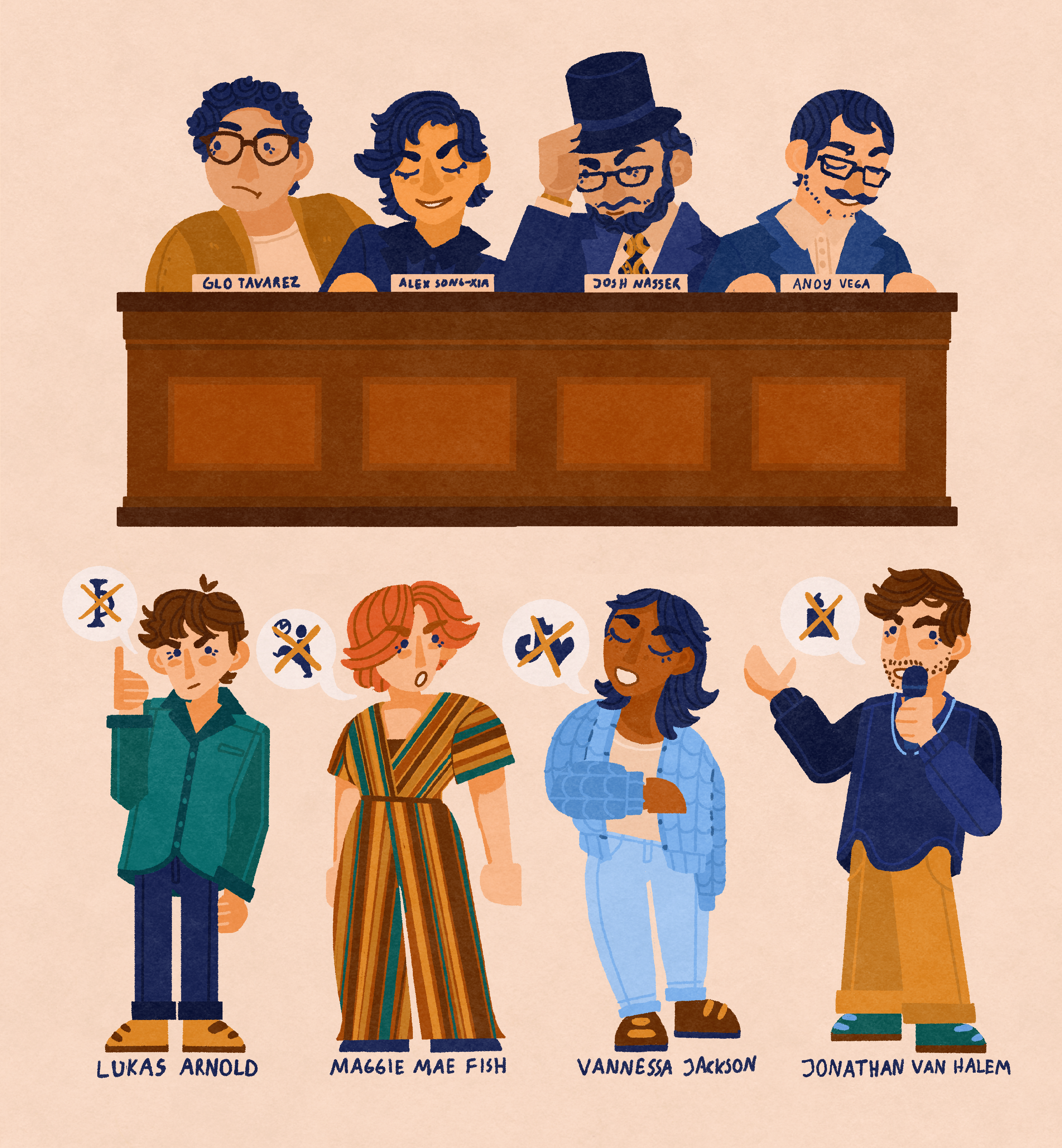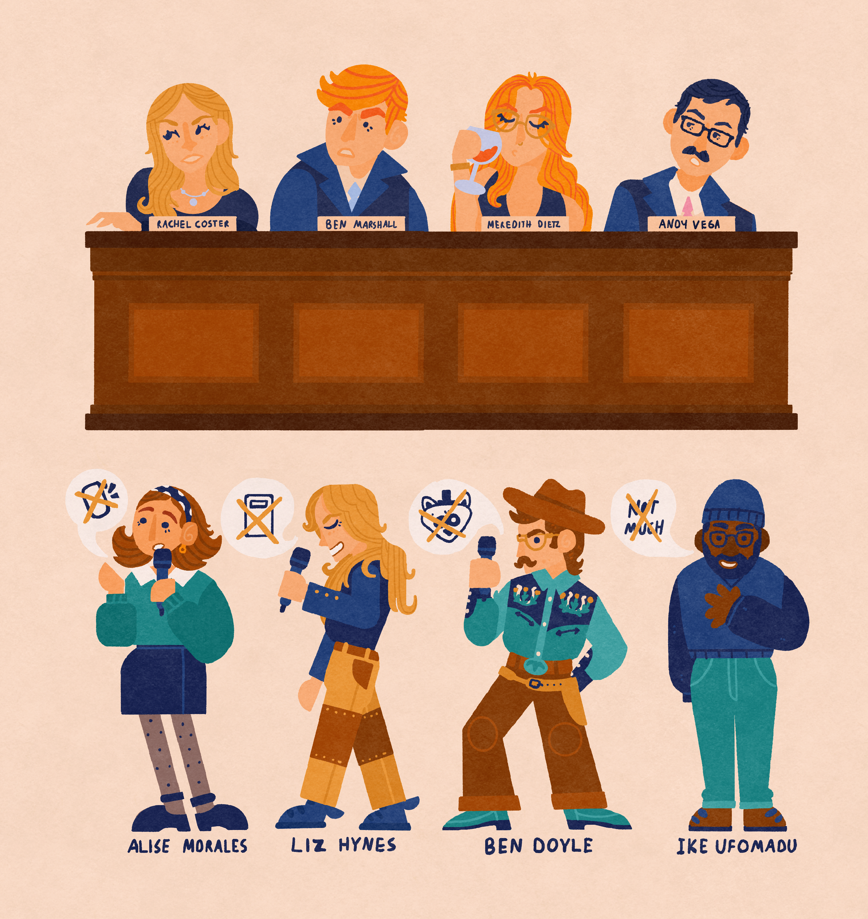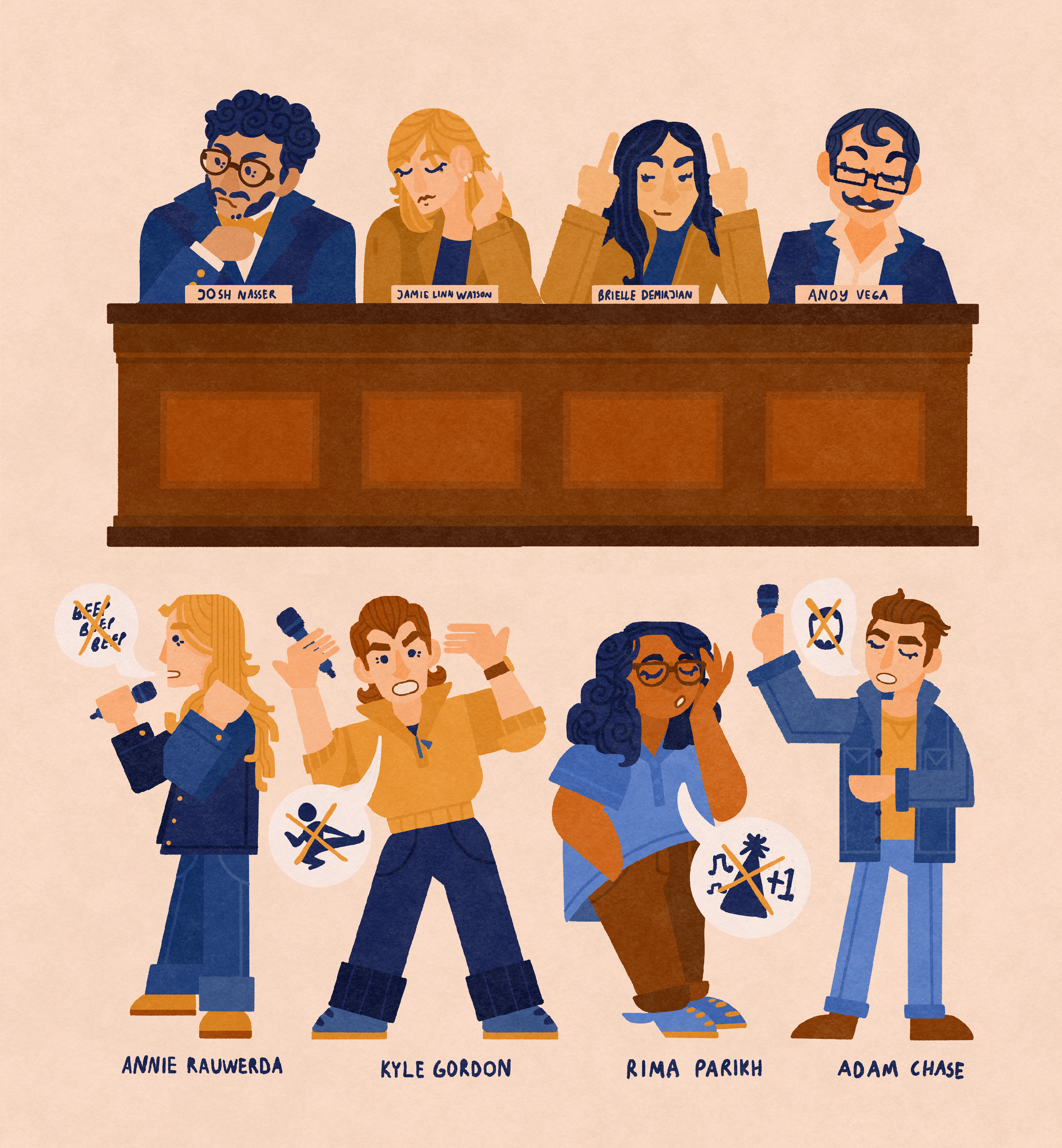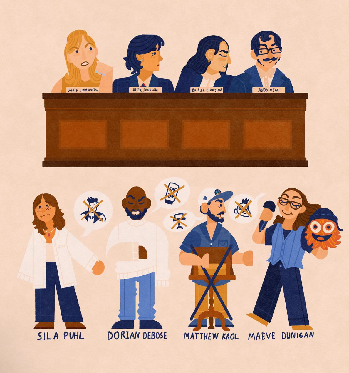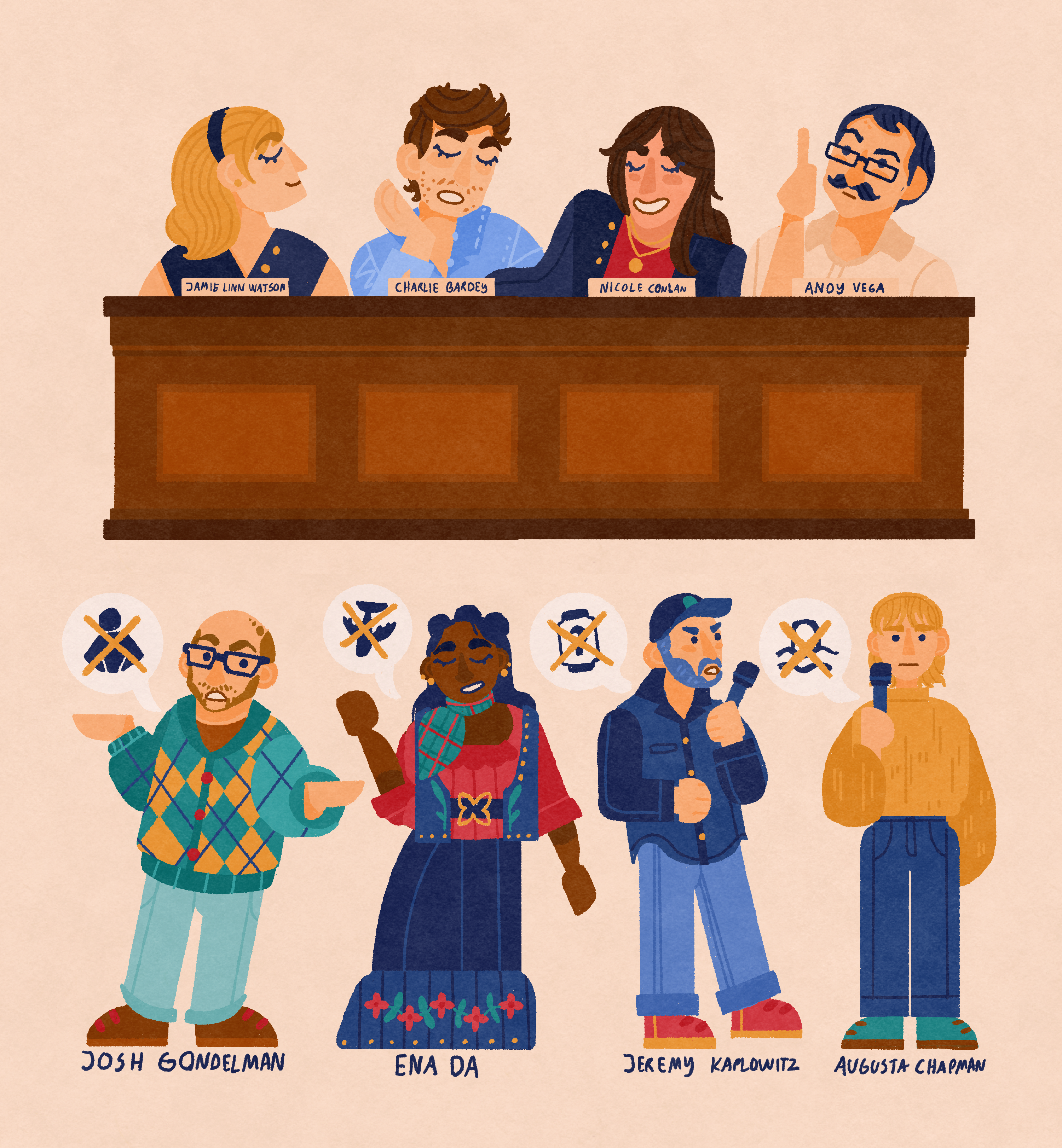 Based on the Nebula show + Caveat comedy show 'Abolish Everything', illustrations of the 'Abolishers' and 'The Establishment' from E1 – E6 from S1.