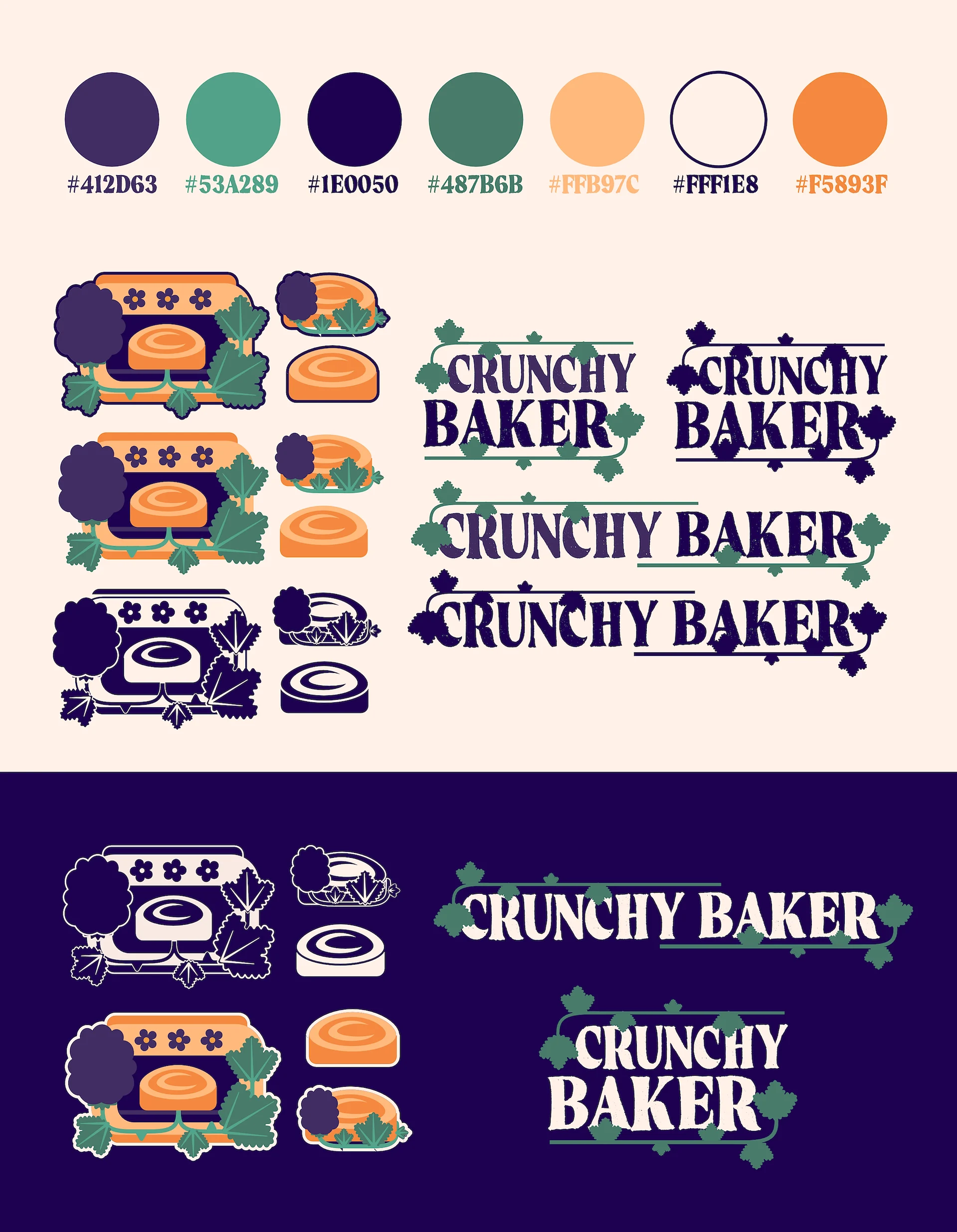 Identity design for Crunchy Baker, an online bakery + baking classes business focused on sustainability and locally grown produce.